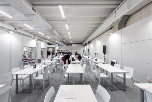 This table offers a very large workstation during corporate events, training courses or workshops. The structure is simple, light but solid. The top is in white wood while the legs are in painted steel. It is a desk that is well suited to be used together with Femme chairs. There are two versions of this: one white and one black.